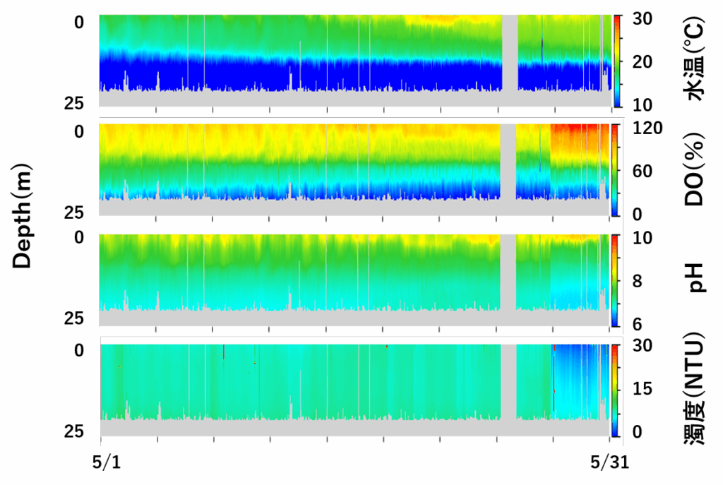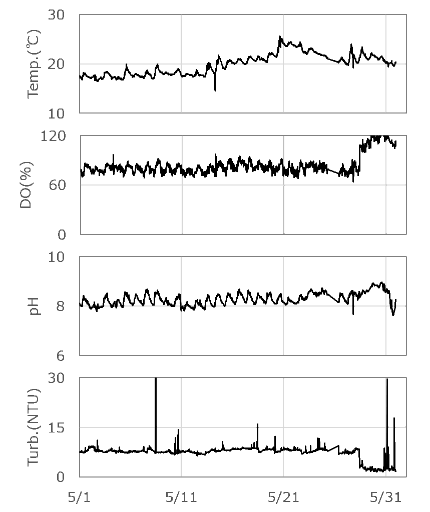 感覚的に水温、DO%、濁度の変化が目立ちます。