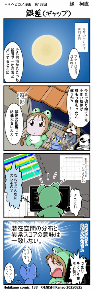 つまり、今回の検証で「潜在空間の分布と異常スコアの意味は一致しない」という結果が示せました。