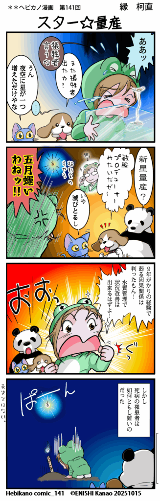 しかし2年前ごろから、メダカで同様の症状を発症する原因が分かってきたそうです(詳細記事)。
